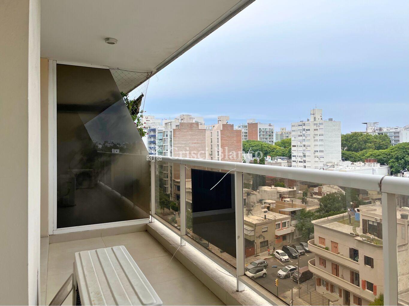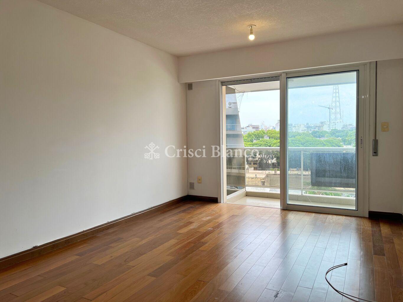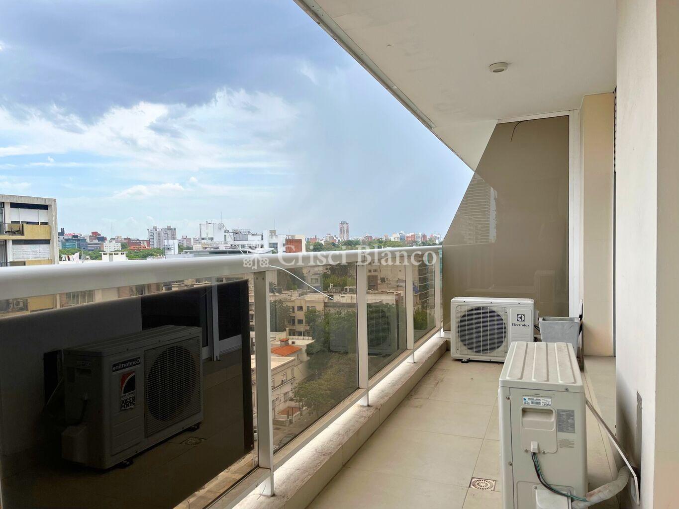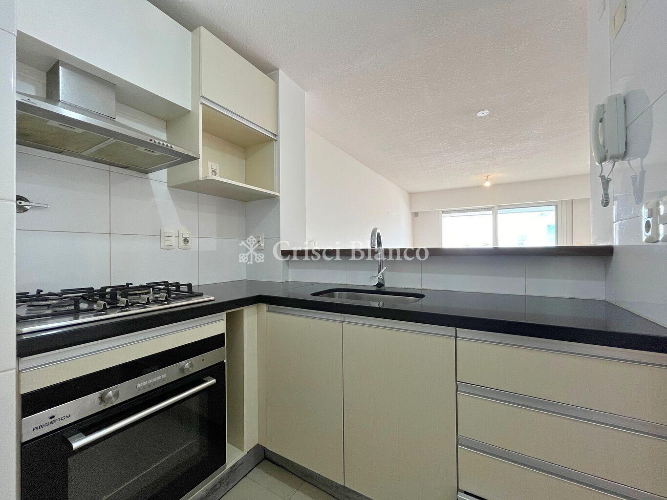Amplio living comedor con cocina integrada (horno, campana y anafe empotrados). Balcón al frente.