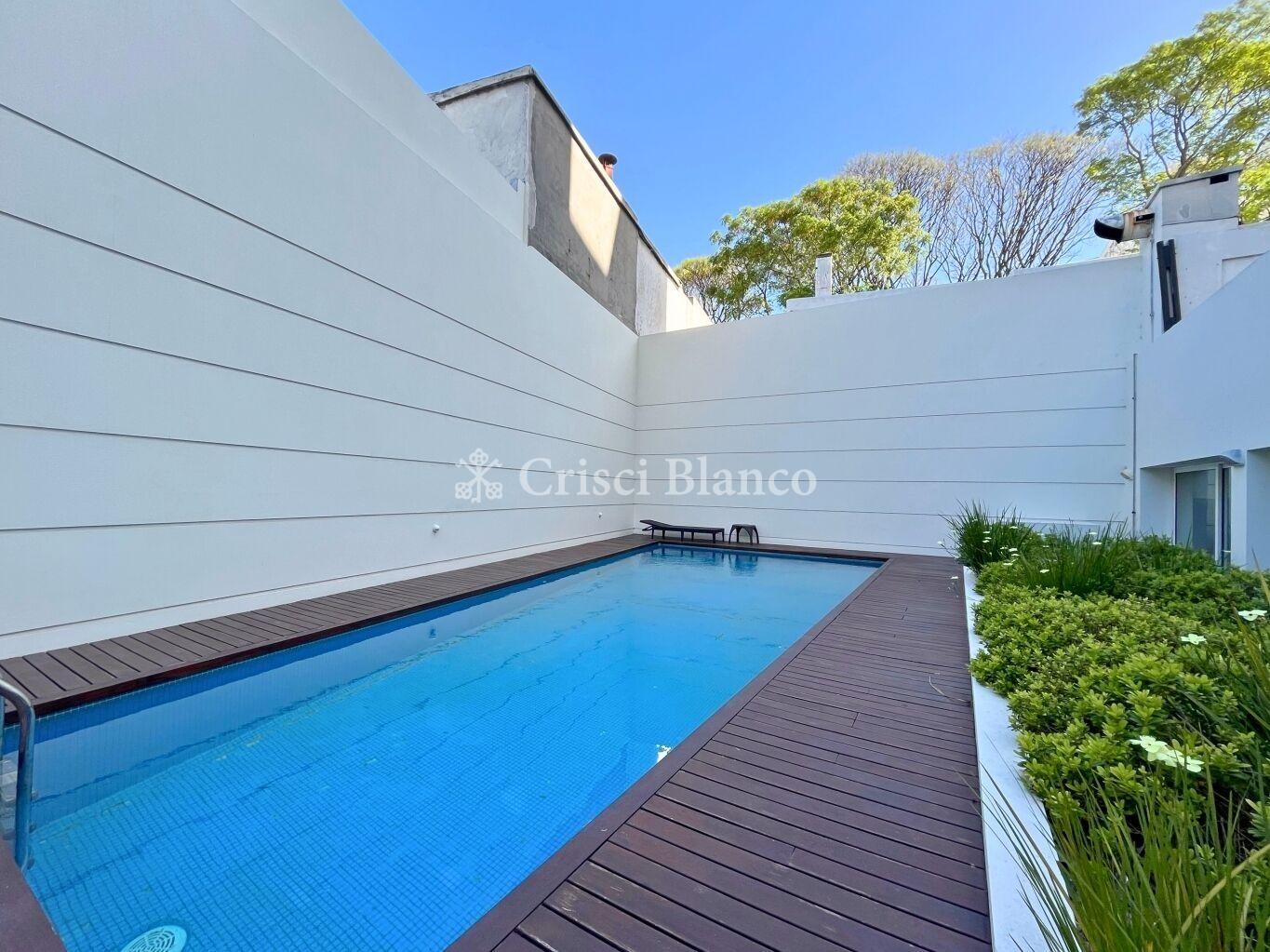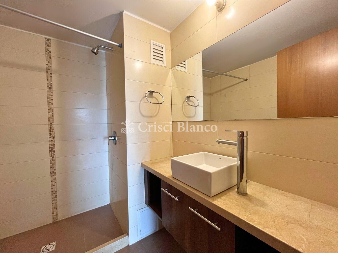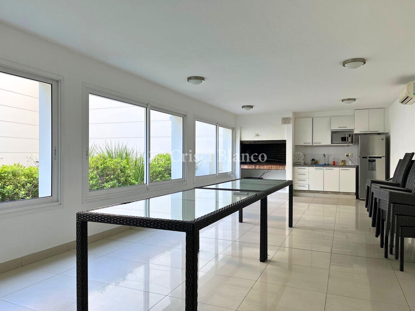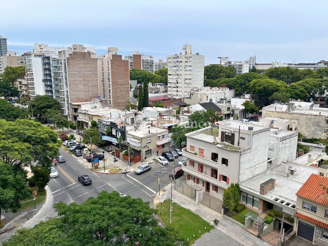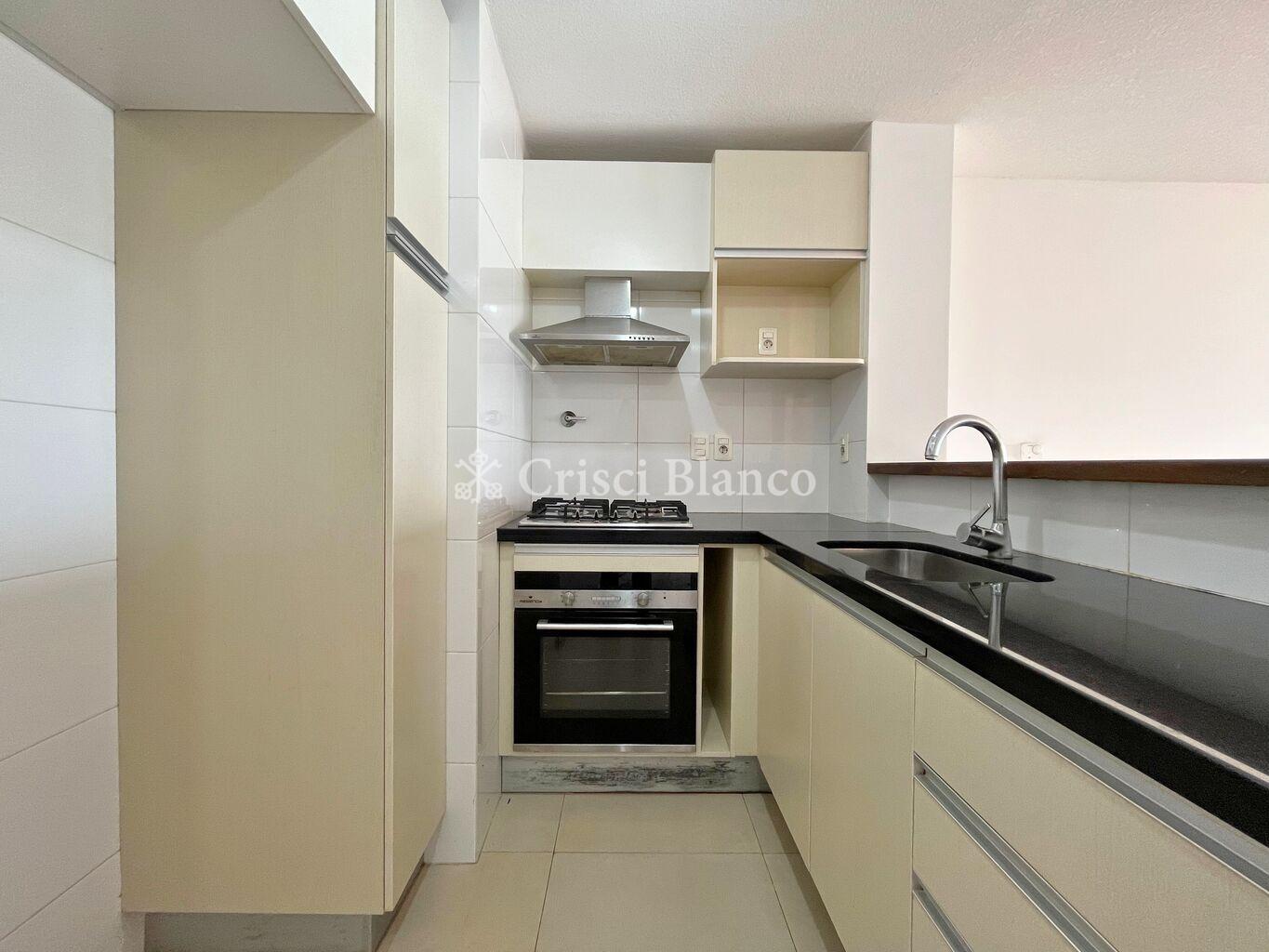 Amplio living comedor con cocina integrada (horno, campana y anafe empotrados). Balcón al frente.