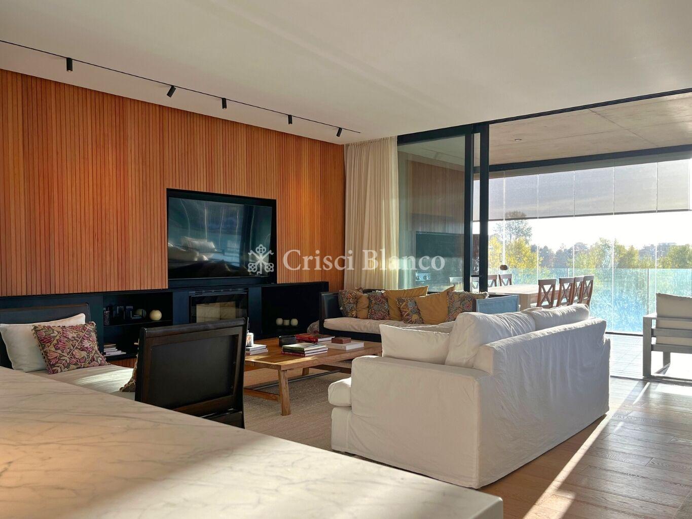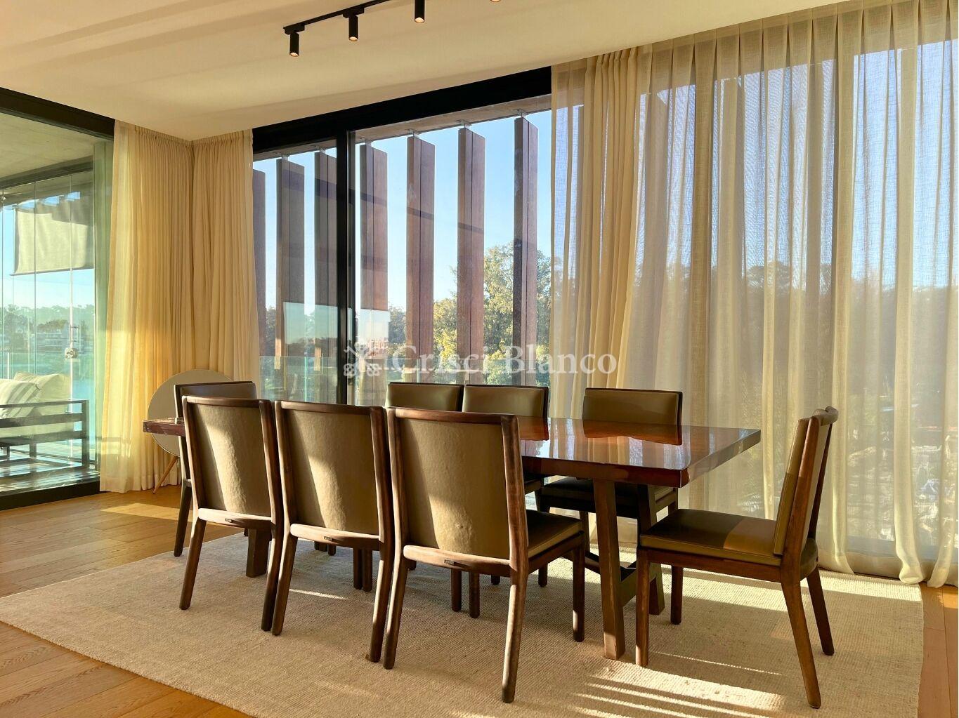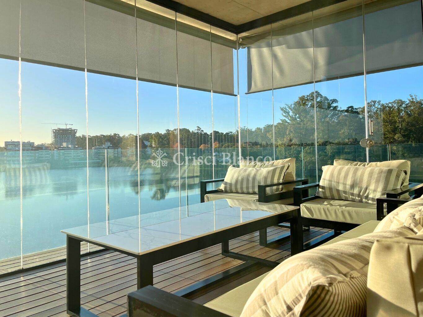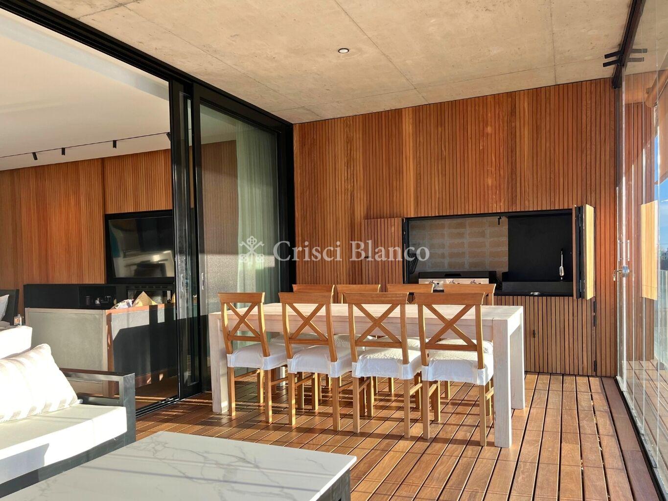 Hall de ingreso. Living comedor de grandes dimensiones muy luminoso, con amplios ventanales de piso a techo, estufa de alto rendimiento. Gran terraza con parrillero con cerramientos de vidrio. Baño social.