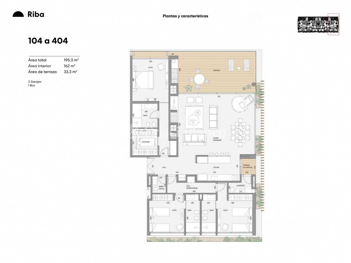 Alquiler divina planta esquinera de 162m2 de área interior y 33,3m2 de terraza.