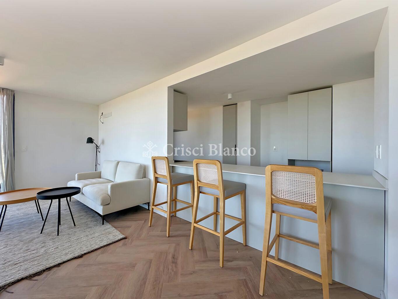 Hall de ingreso. Living comedor amplio y luminoso con salida a gran terraza, vistas despejadas hacia la rambla.