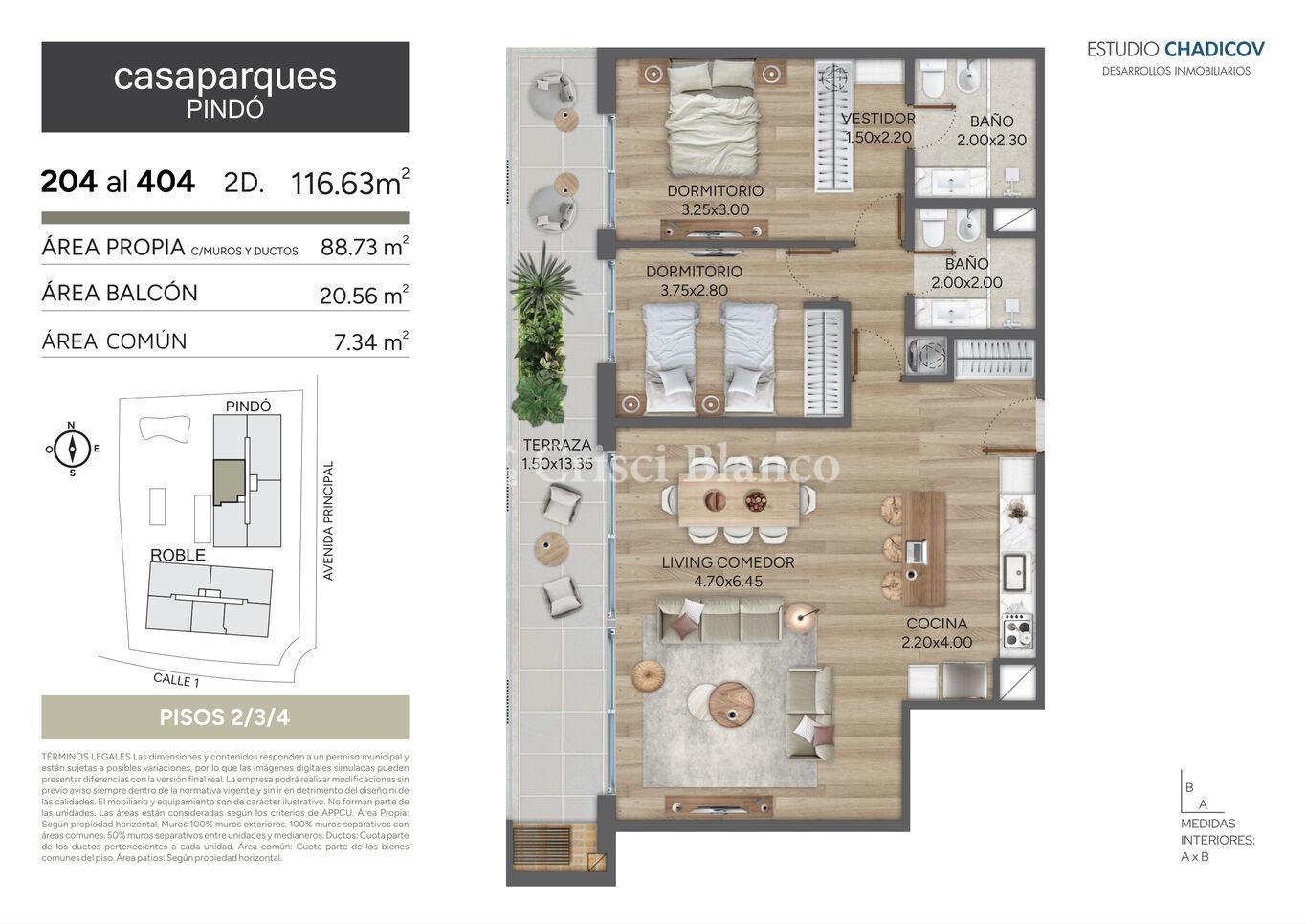 Venta de apartamento 2 dormitorios en Casa Parques, Barrio Parques II, Montevideo.