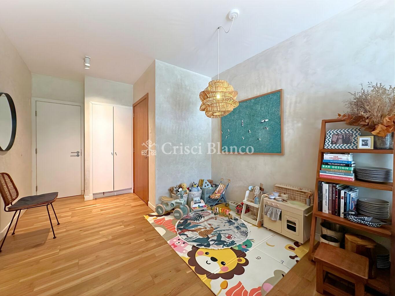 Al ingresar, despojador y amplio living-comedor muy luminoso con orientación norte y salida a una generosa terraza techada que extiende el área social hacia el verde.