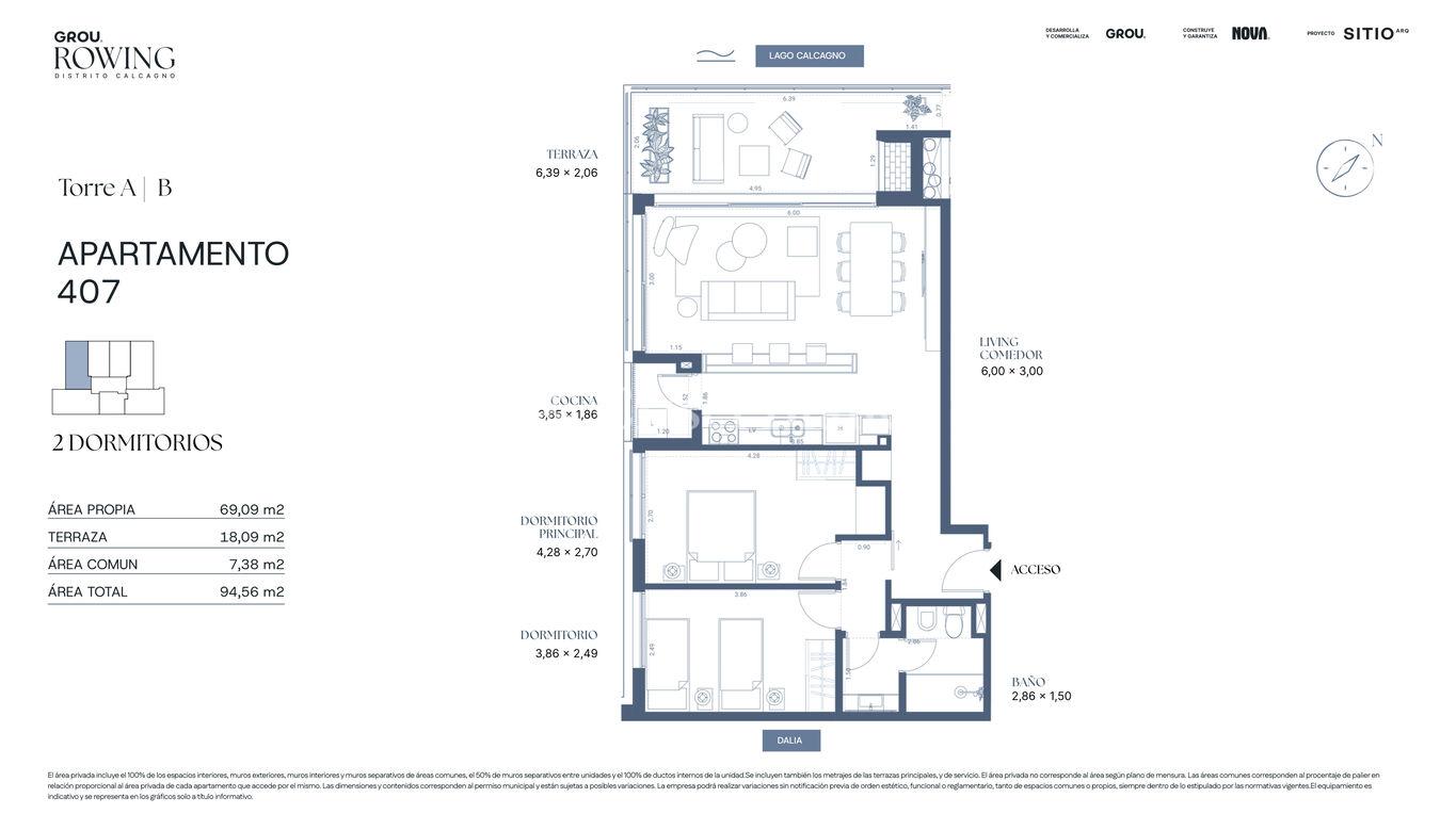 Hall de ingreso con despojador. Living comedor esquinero amplio y luminoso con salida a gran terraza con parrillero. Vistas despejadas hacia el lago.