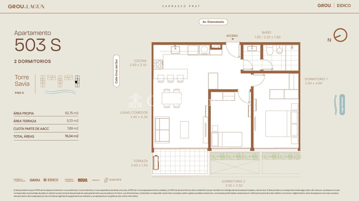 Dos dormitorios (principal en suite con vestidor), secundario con placard. Cortinas de enrollar. 1 baño completo compartimentado.