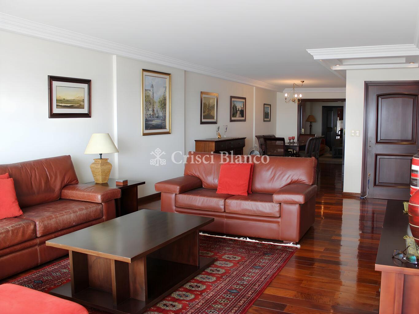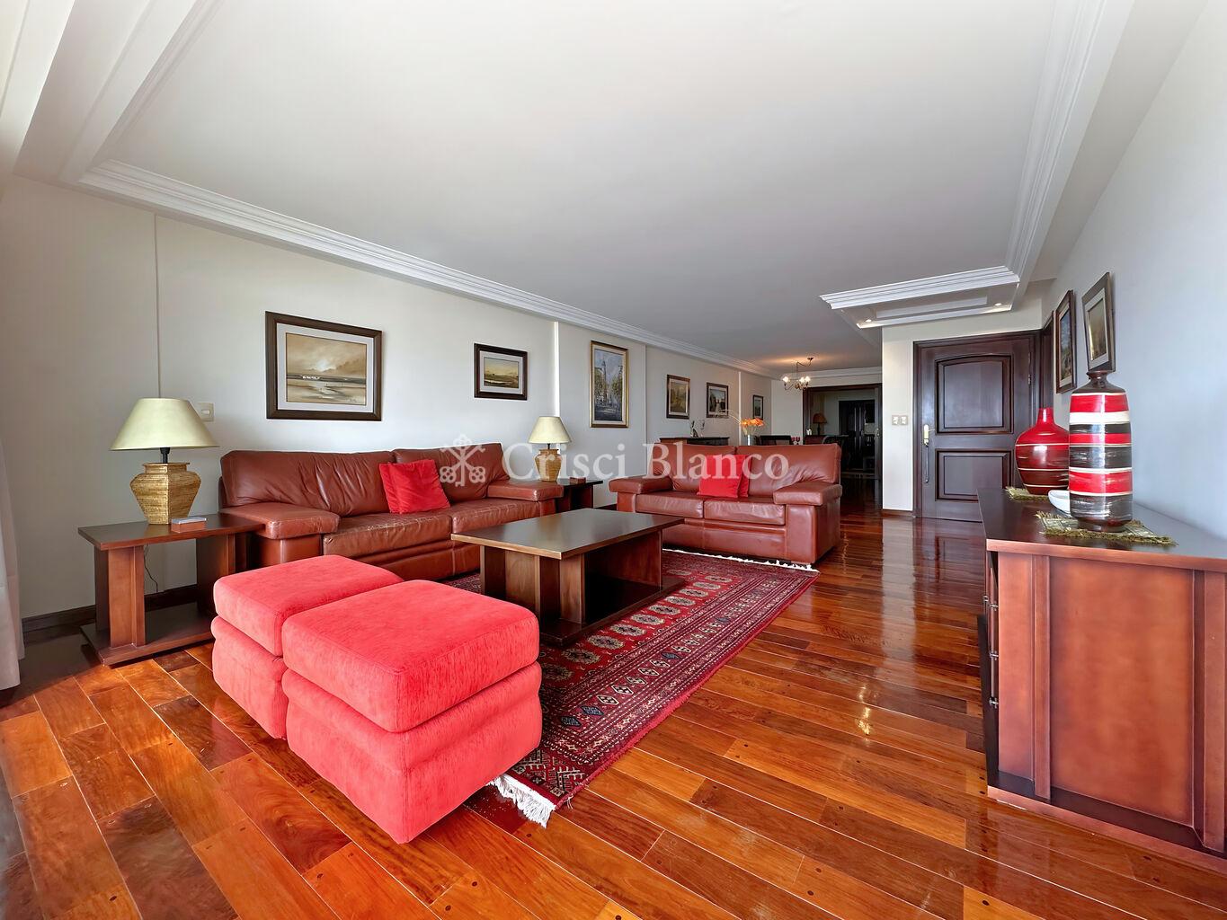 Exclusiva planta en venta, en edificio de categoría sobre la rambla de Pocitos. Piso alto, excelente calidad de construcción y carpintería.