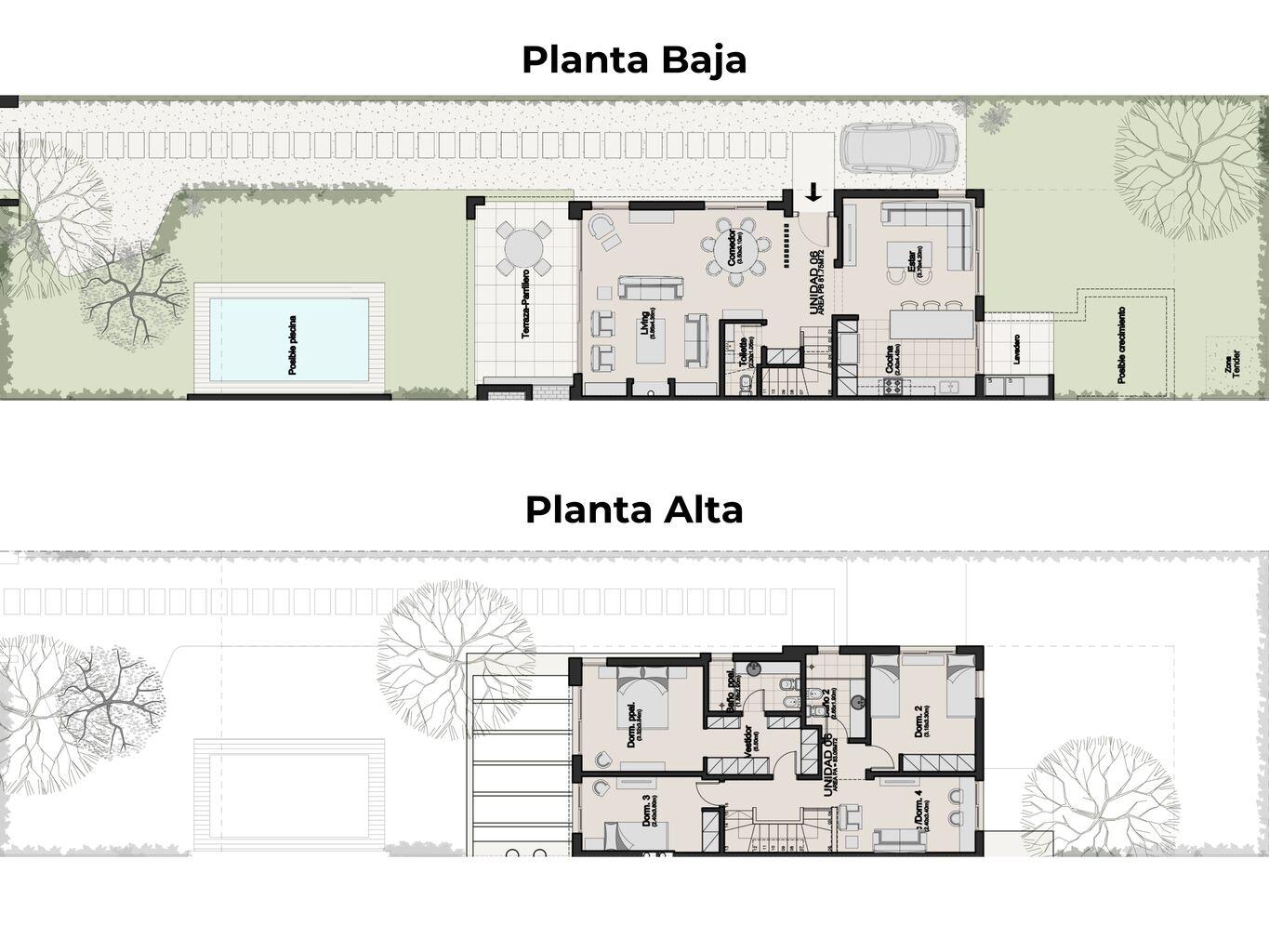 Casas de Pindó - Venta Casa Ph de 3 dormitorios + escritorio, ubicada en Barrio Parques II. Proyecto del estudio JDVA.