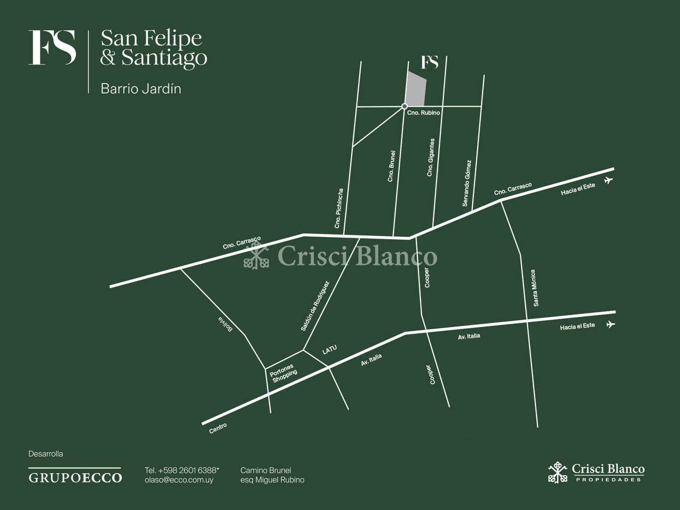Situado lindero a San Nicolás, sobre las apacibles calles Rubino y Camino Brunel a pocos metros de la nueva iglesia, el barrio te conecta con lo mejor de la ciudad y la tranquilidad de la reserva rural.