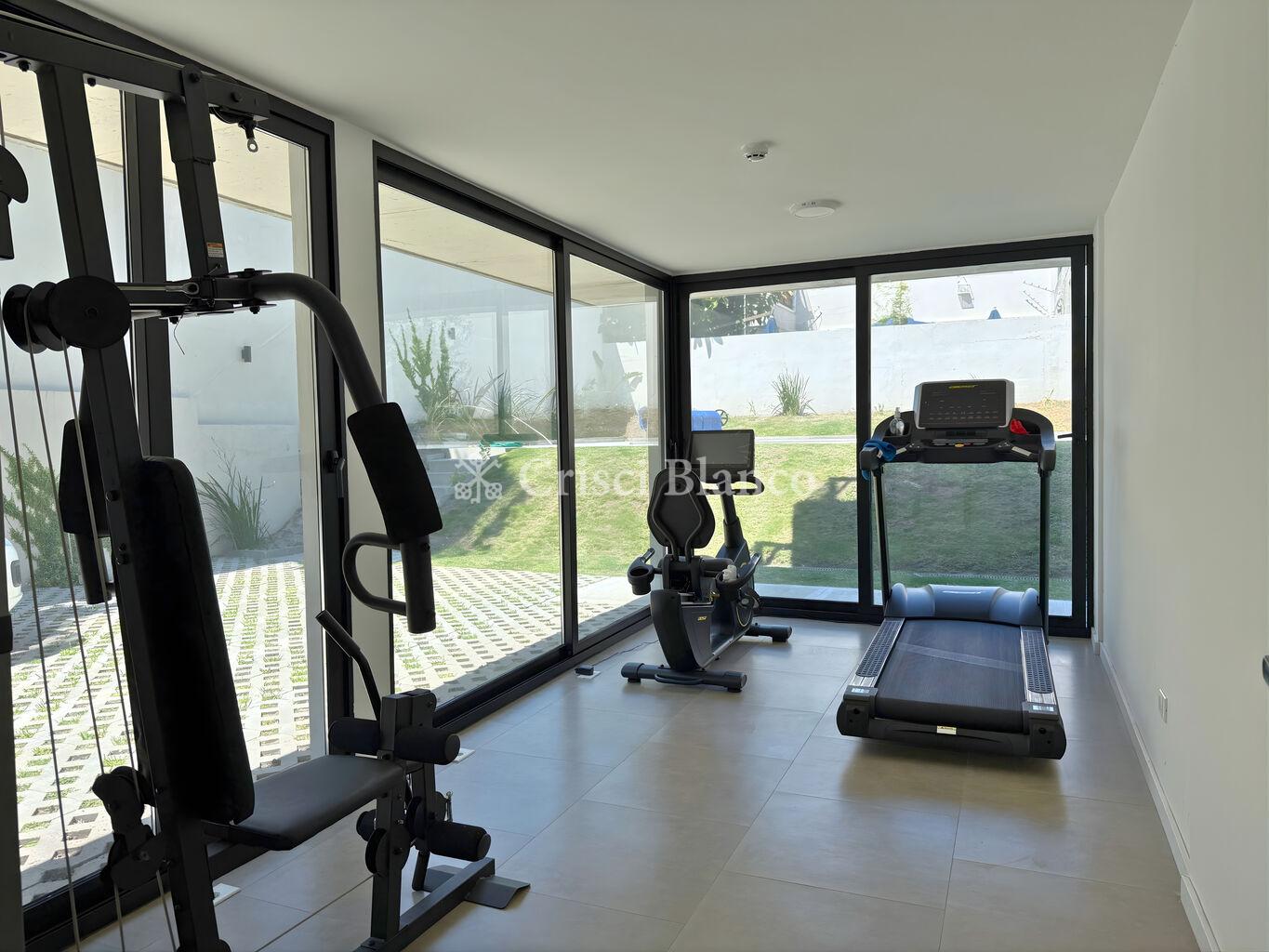 Persianas eléctricas en ambos ambientes. Luminarias tipo dicroicas empotradas en techos. Equipo de aire acondicionado en el living.