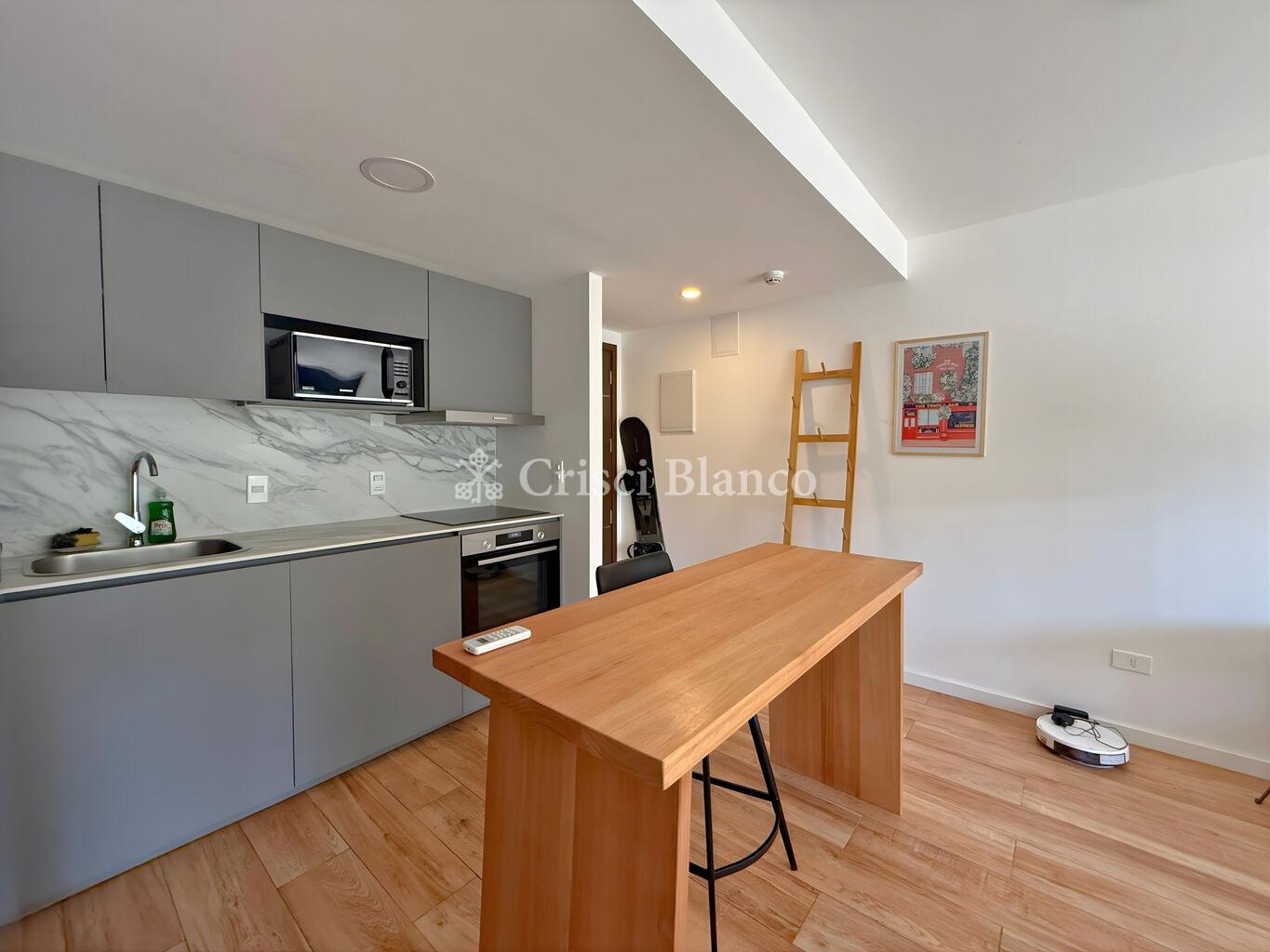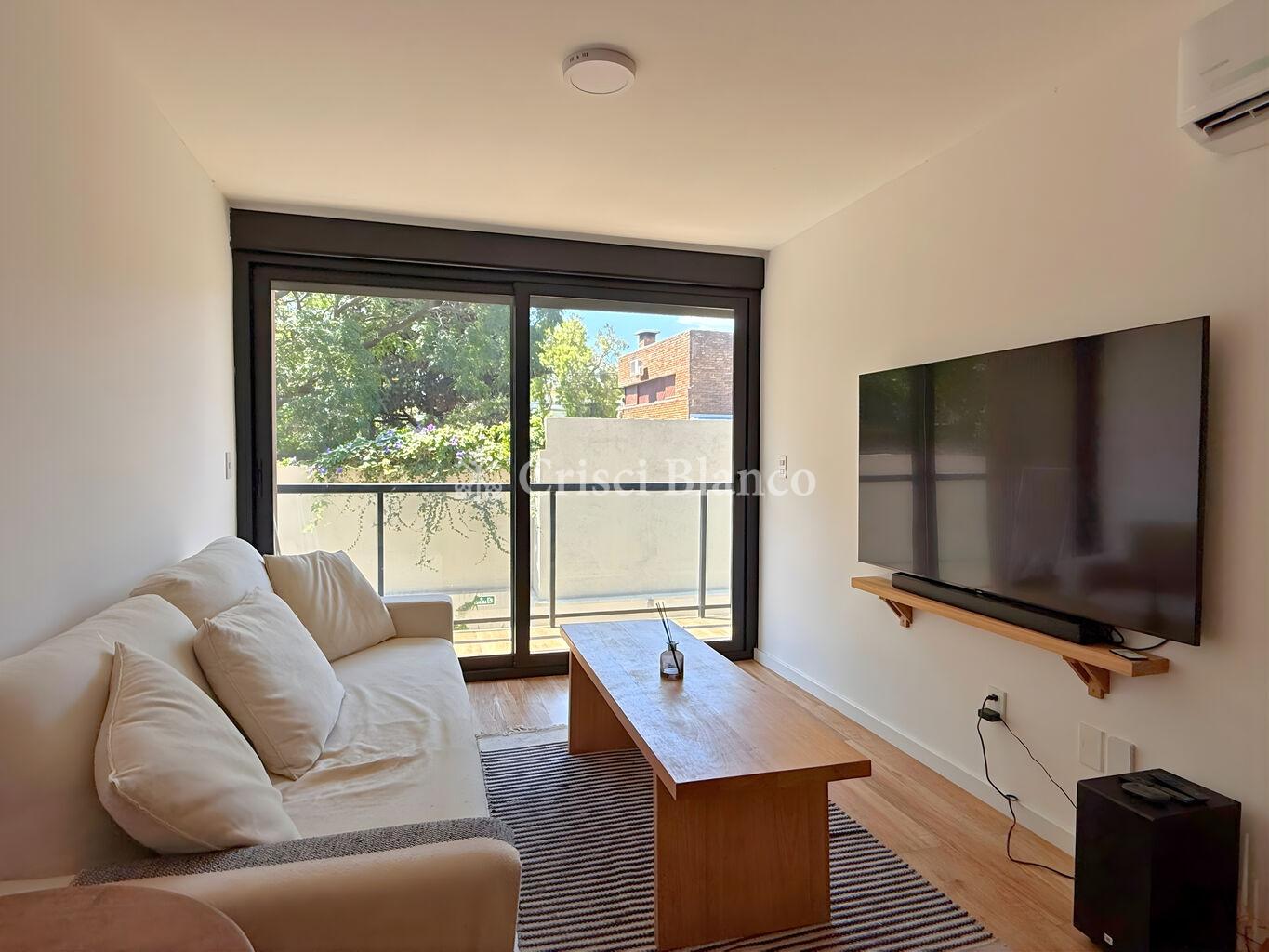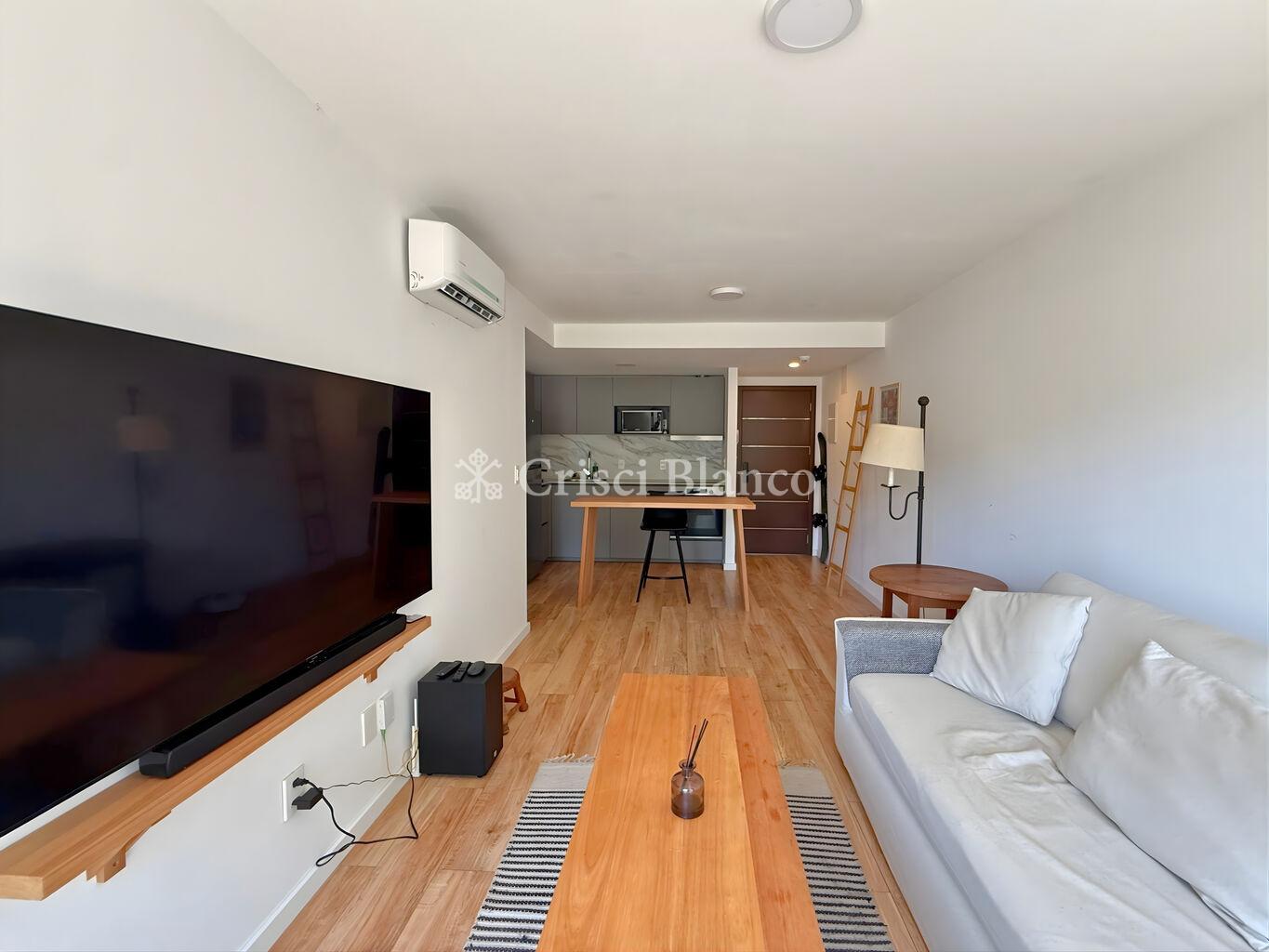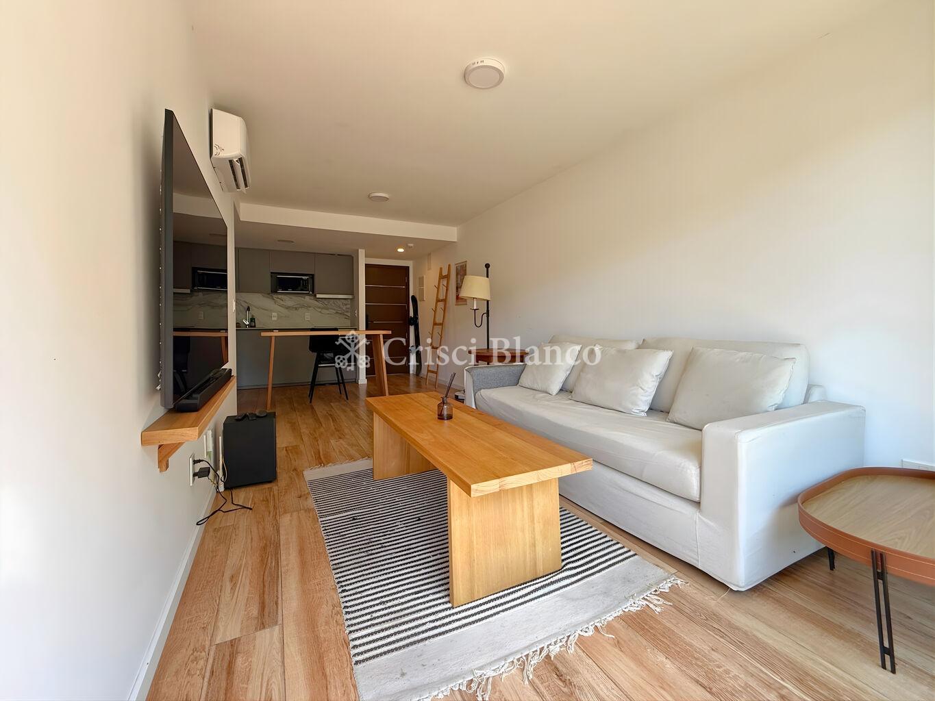 En un edificio nuevo, apartamento de 1 dormitorio de buenas dimensiones, con muy lindo living comedor integrado con cocina moderna. Horno campana y anafe eléctrico.