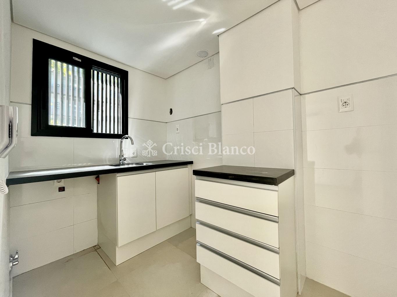 Living comedor amplio y luminoso con orientación norte, salida a terraza. Cocina definida con previsión para lavavajillas o lavarropas.