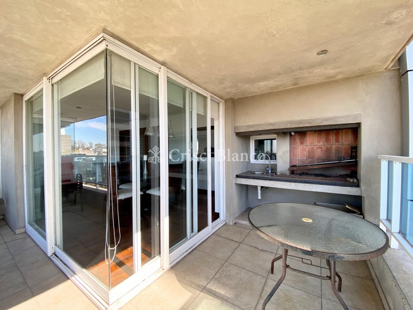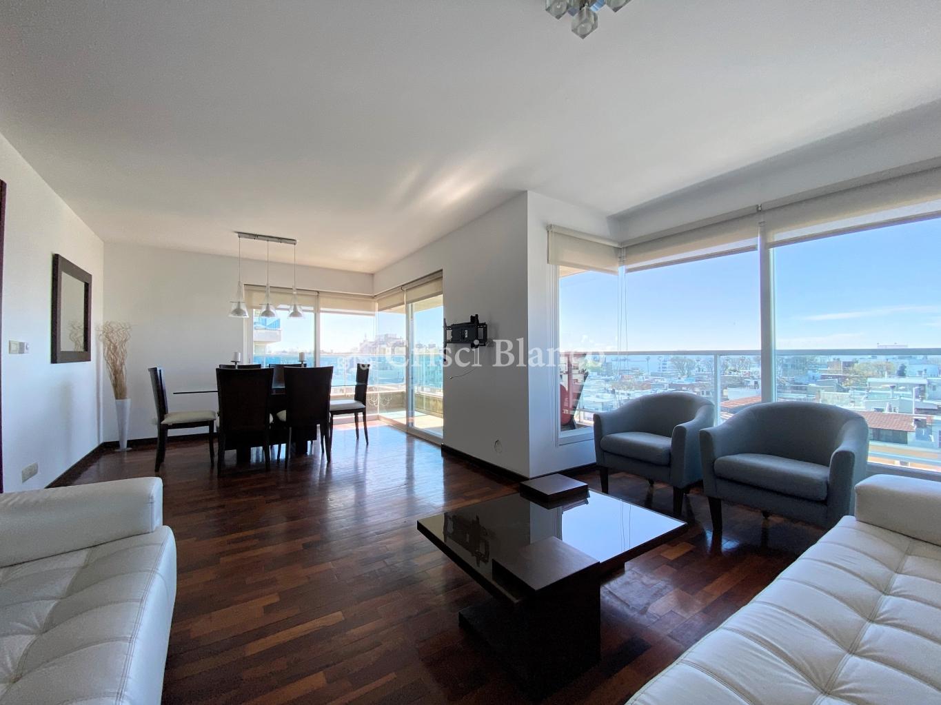 Living comedor esquinero amplio y luminoso con vistas despejadas. Terraza con parrillero.